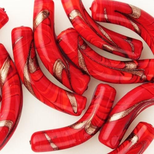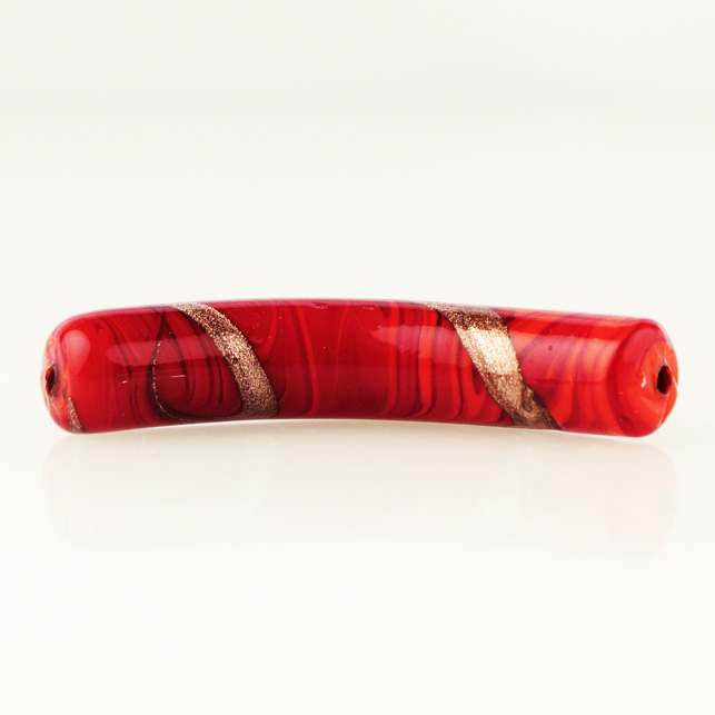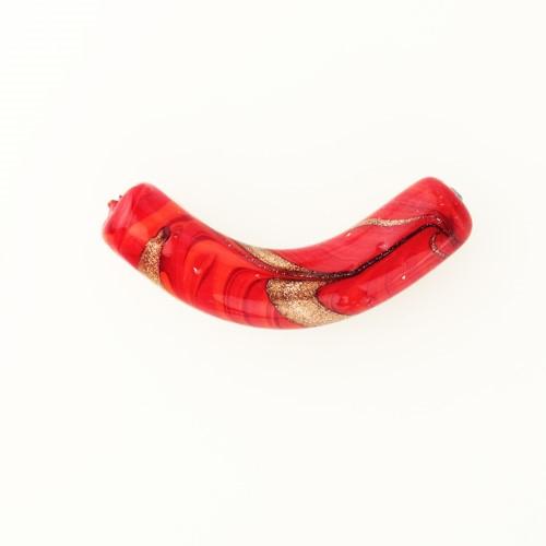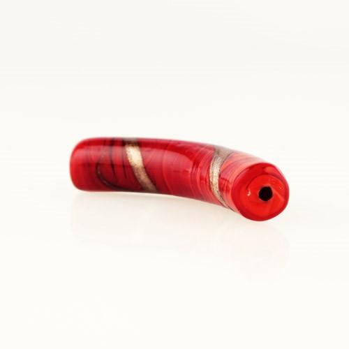 Perla di Murano tubo curvo Fenicio Ø10x48. Vetro bianco, rosso e avventurina. Foro passante.