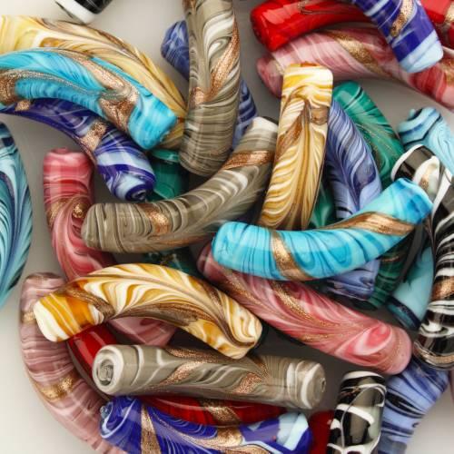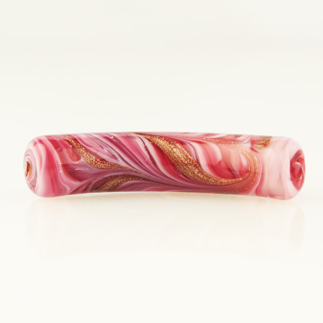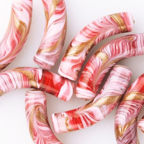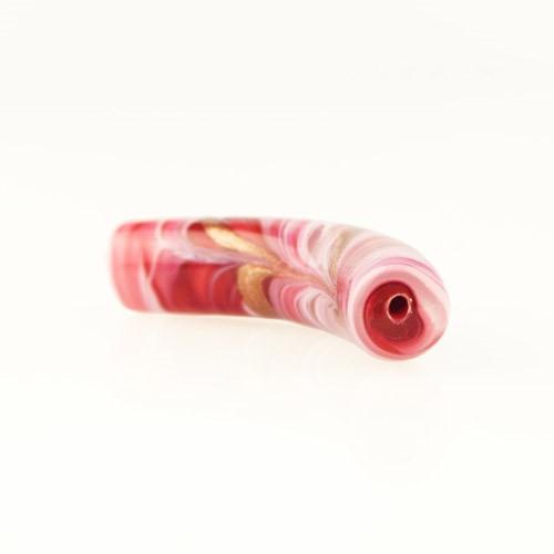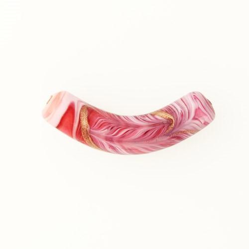 Perla di Murano tubo curvo Fenicio Ø10x48. Vetro bianco, rubino, rosa e avventurina. Foro passante.