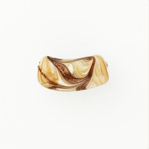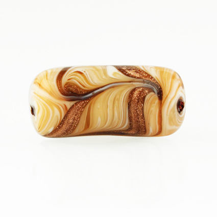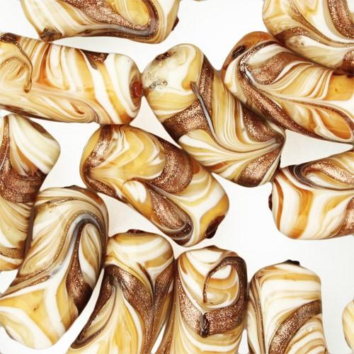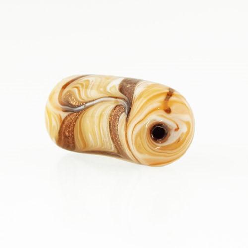 Perla di Murano tubo curvo Fenicio Ø9x23. Vetro ambra, avorio, topazio e avventurina. Foro passante.