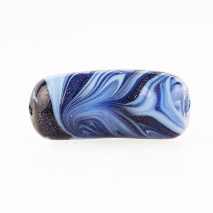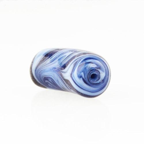 Perla di Murano tubo curvo Fenicio Ø9x23. Vetro pervinca, lapis e avventurina blu. Foro passante.