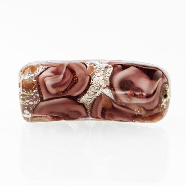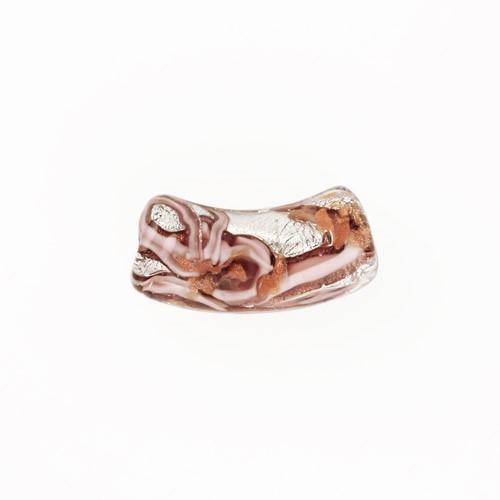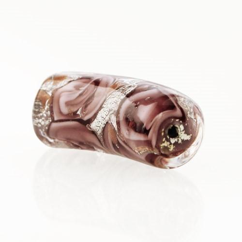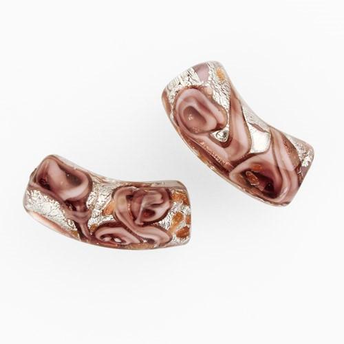Perla di Murano tubo curvo Medusa Ø9x22. Vetro rosa, foglia argento e avventurina. Foro passante.