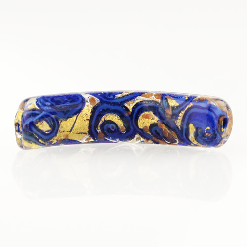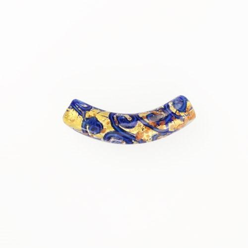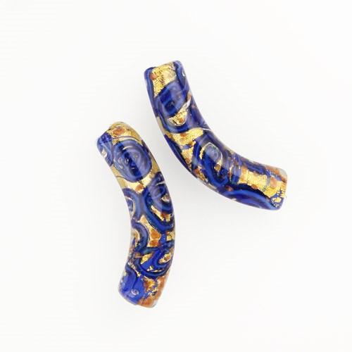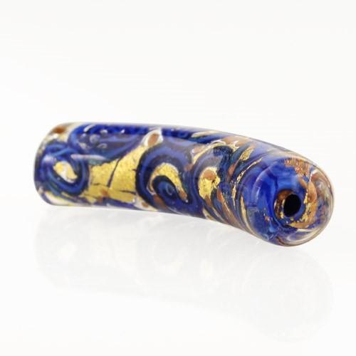 Perla di Murano tubo curvo Medusa Ø9x42. Vetro blu lapis, azzurro con avventurina. Foro passante.