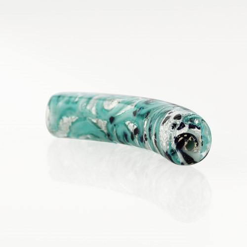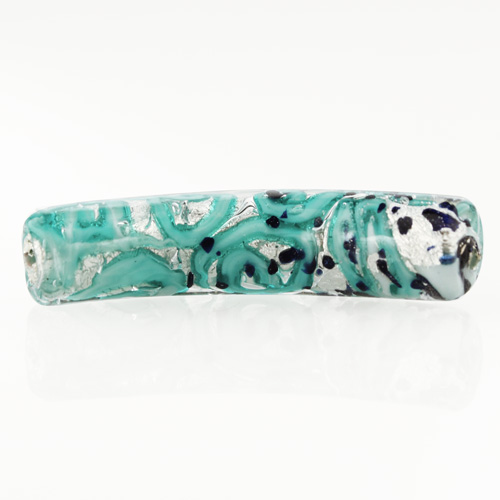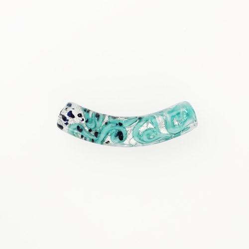 Perla di Murano tubo curvo Medusa Ø9x42. Vetro verde marino, foglia argento e avventurina blu. Foro passante.
