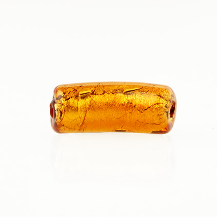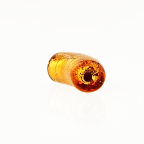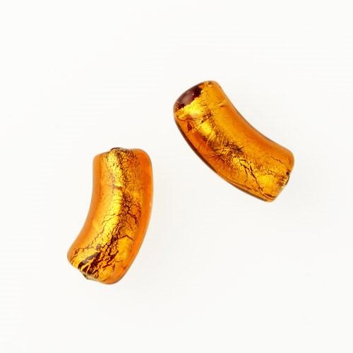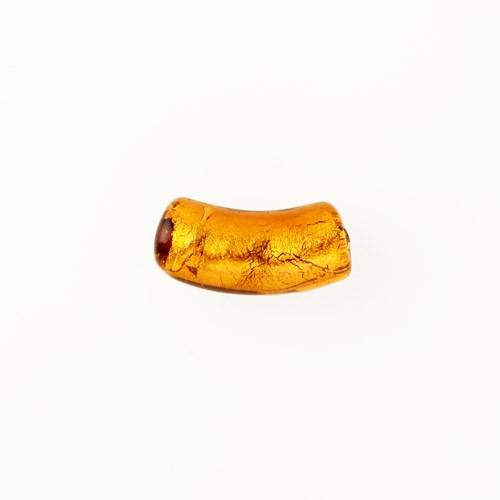 Perla di Murano tubo curvo Sommerso Ø8x18. Vetro topazio foglia oro. Foro passante.