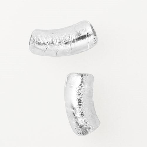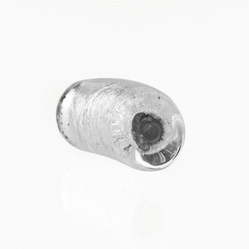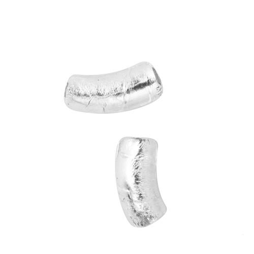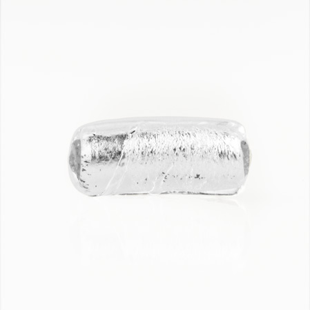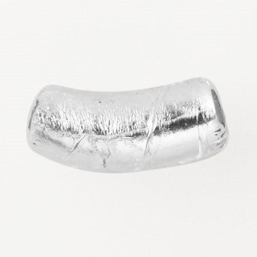 Perla di Murano tubo curvo Sommerso Ø8x18. Vetro trasparente foglia argento. Foro passante.