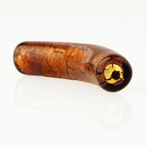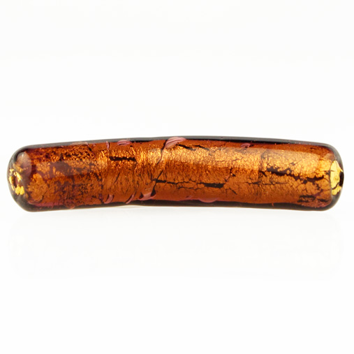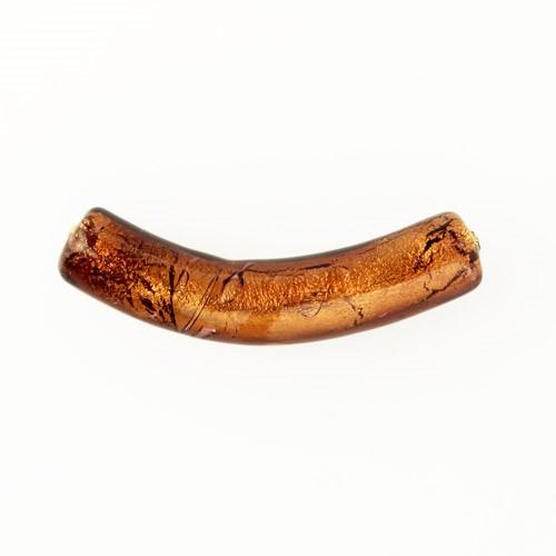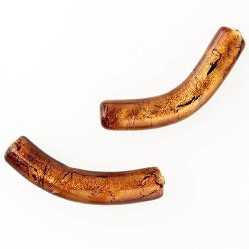 Perla di Murano tubo curvo Sommerso Ø8x40. Vetro ametista, foglia oro. Foro passante.