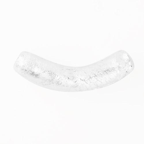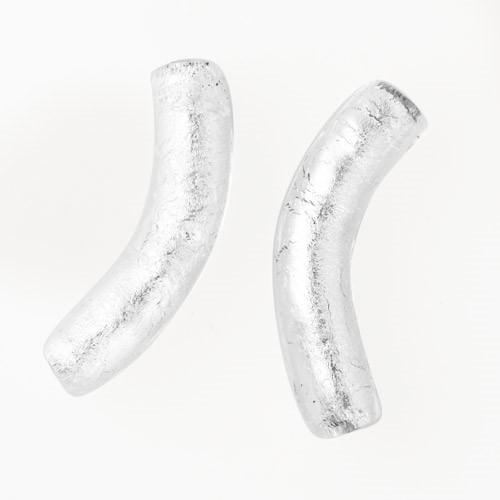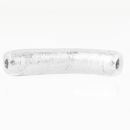 Perla di Murano tubo curvo Sommerso Ø8x40. Vetro trasparente, foglia argento. Foro passante.