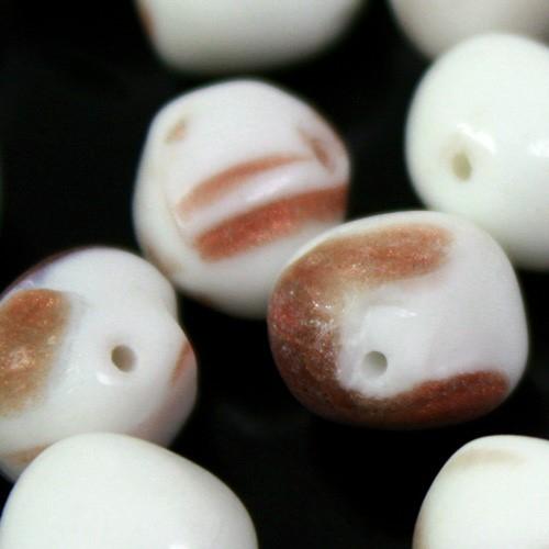 Perla in pasta di vetro screziata bianca e avventurina, 11 mm