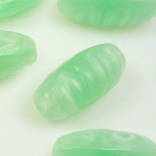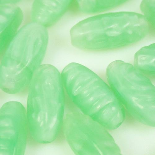 Perla vintage ovoidale allungata in pasta di vetro verde seta, 17 mm