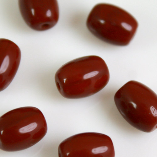 Perla vintage ovoidale in pasta di vetro marrone, 9 mm