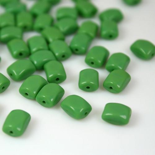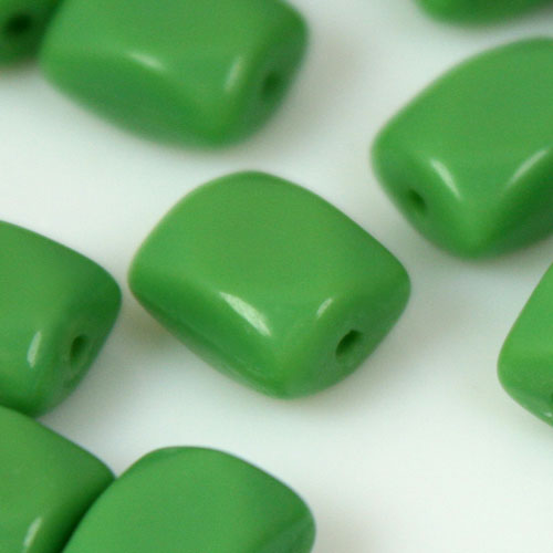 Perla a forma di prisma leggermente stondato, realizzata in pasta di vetro verde. Tutte le perle misurano circa 5 mm di larghezza e 8 mm di altezza, e sono dotate di un foro, di 0.8 mm di diametro, necessario per infilare nella perla fili e spilli. Caratteristica di questa perla è il colore vivace, nonchè la sua forma particolare, elementi che la rendono unica nel suo genere. Tali perle sono realizzate artigianalmente in pasta di vetro lavorata con antiche procedure non più impiegate. Perfetta per la creazione di bijoux e pendenti, sono utilizzabili anche per decorare confezioni regalo o adornare composizioni floreali, inoltre sono impiegabili per adornare addobbi di home decor.