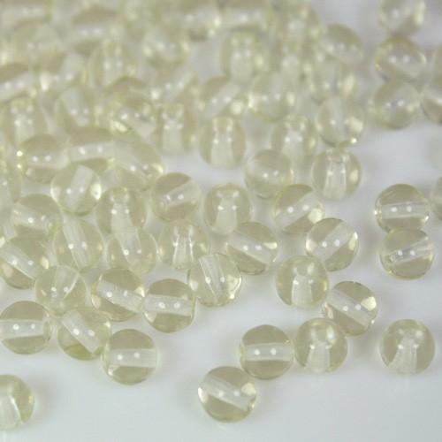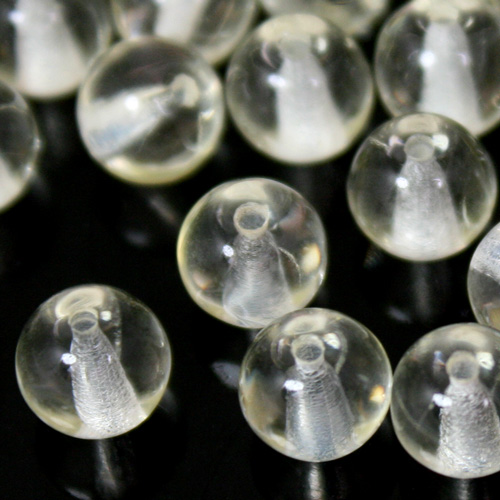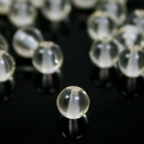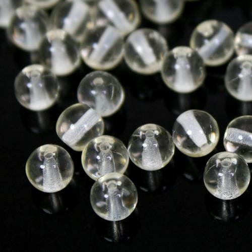 Perla di forma tonda, plasmata in pasta di vetro trasparente puro. Ogni perla misura