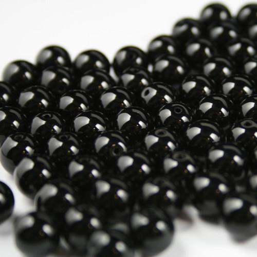 Perla tondino 8 mm nero lucido in pasta di vetro Murano, foro passante