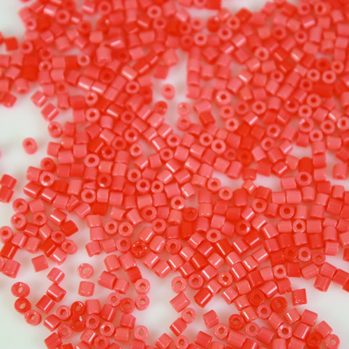 Perline di conteria, in vetro color corallo. Ogni perlina misura circa 2 mm di larghezza e 2.5 mm di altezza, ognuna di esse inoltre è dotata di un foro passante lungo l'altezza di diametro 0.6 mm. Conterie dal colore vivace, devono la loro unicità al fatto che sono realizzate in maniera completamente artigianale. Perline ideali per l'home decor, per la decorazione di oggetti e tessuti, inoltre utilizzabili anche per valorizzare e impreziosire monili e strenne.