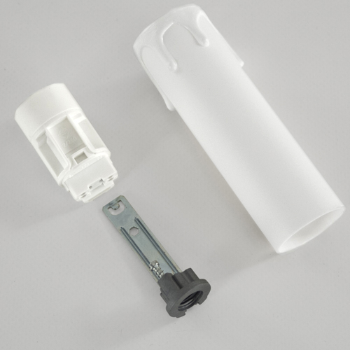 Portalampada a candela 65 mm completo nippel - staffa - anima e guscio bianco