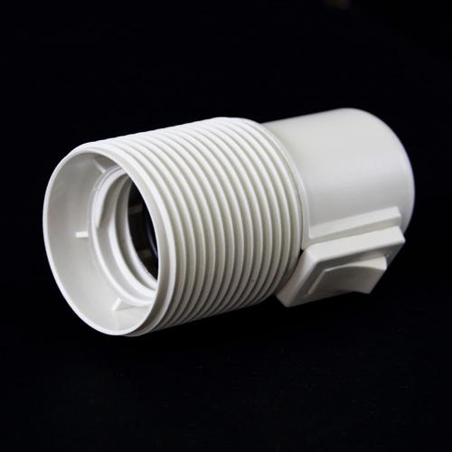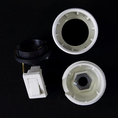 Portalampada filettato bianco in plastica E27 con interruttore on/off, ideale per il restauro dei lampadari, il rinnovo di lampade e la manutenzione di impianti elettrici su lampadari di vario tipo, sia antichi che moderni.