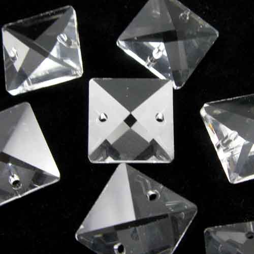 Quadruccio 14 mm colore puro trasparente cristallo vetro sfaccettato 2 fori