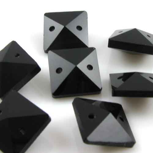 Quadruccio 14 mm nero lucido cristallo vetro sfaccettato 2 fori