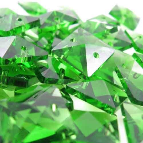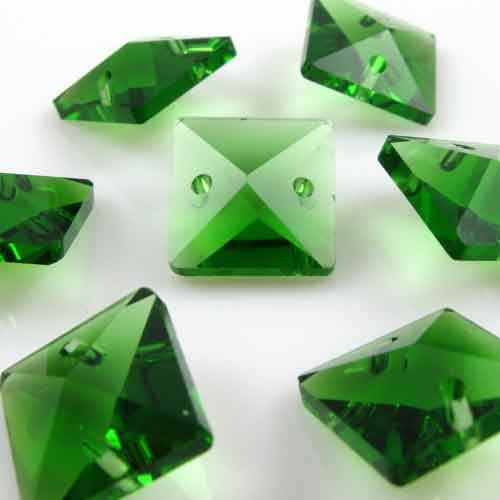 Quadruccio 14 mm verde cristallo vetro sfaccettato 2 fori