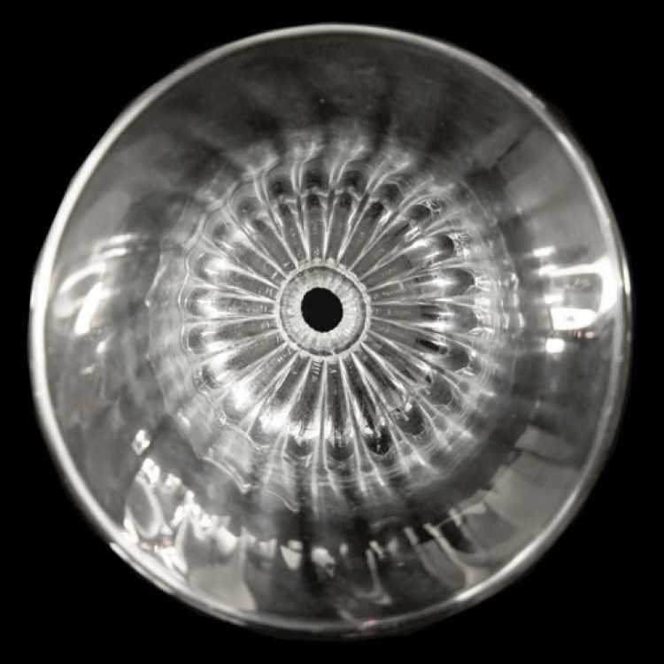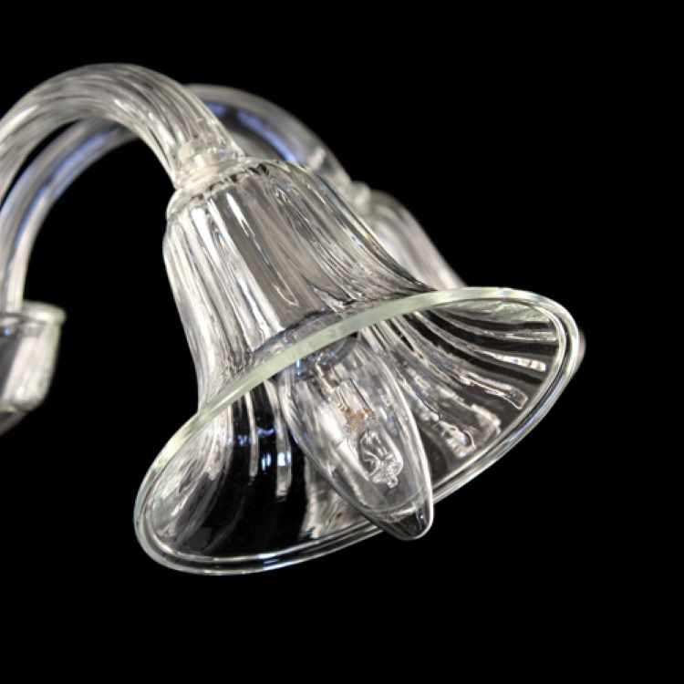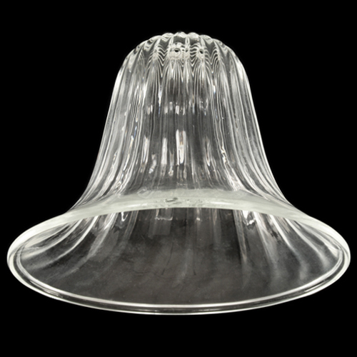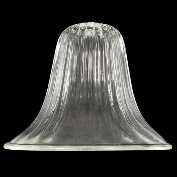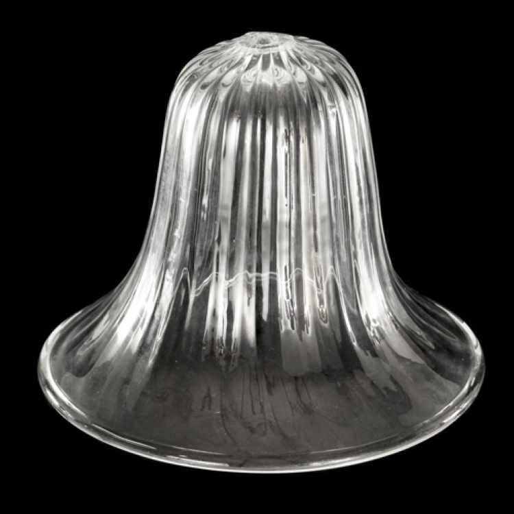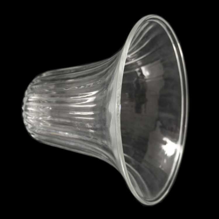 Tazza portalampada, ricambio in vetro per lampadari in stile veneziano, colore puro trasparente, forma a campana. Si tratta di un pezzo di ricambio per lampade e lampadari in vetro particolarmente adatto per la riparazione e il restauro di lampadari in vetro soffiato in stile veneziano. Nel sito sono disponibili diverse tipologie di tazze portalampada, con forme, dimensioni e colorazioni diverse.
