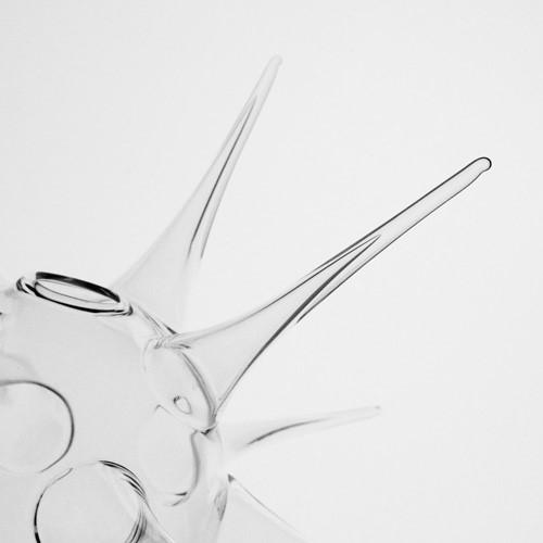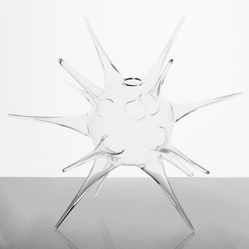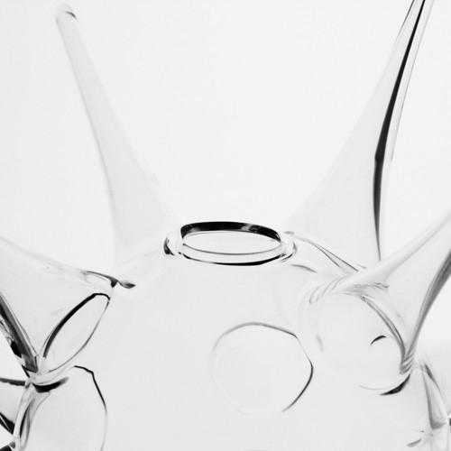 Vaso porta candela a riccio 35 cm vetro soffiato cristallo trasparente. Gli spini che puntano verso l'esterno sono il dettaglio che dona fascino a questo vaso in vetro soffiato. È disponibile in numerose varianti dimensionali presenti nel nostro sito.