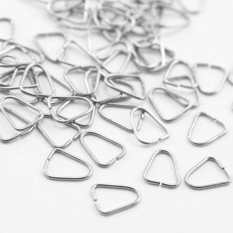 Clip connettori a triangolo finitura nickel per vetri e cristalli da lampadario, larghezza 7 mm. I ganci proposti sono realizzati in Italia. Da sempre sono utilizzati per l'ornamentazione dei più raffinati lampadari veneziani, delle opere in arte fiorentina e dei Maria Teresa. Sono adatti anche per la creazione di catene di cristalli, tende di cristalli, addobbi e composizioni.