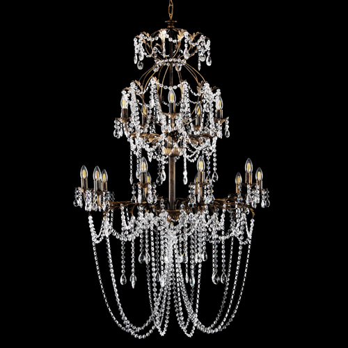 Lampadario 15 luci color bronzo spennellato oro, a 2 piani. Allestito con ottagoni e mandorle molati.