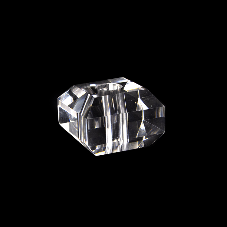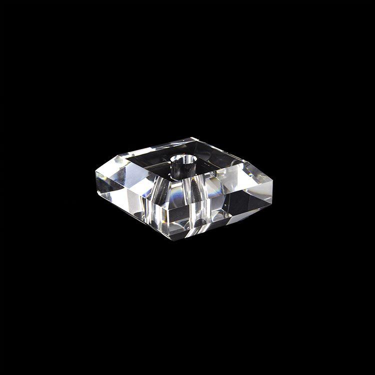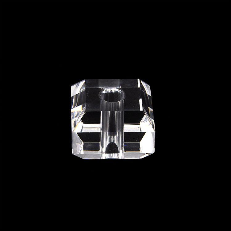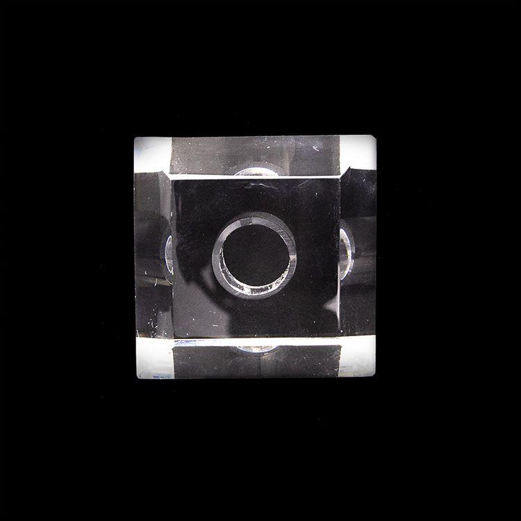 Infilaggio quadrangolare in cristallo massiccio molato per creazione di lampadari cristallo, dimensioni 30x30 mm con foro passante da 11 mm.