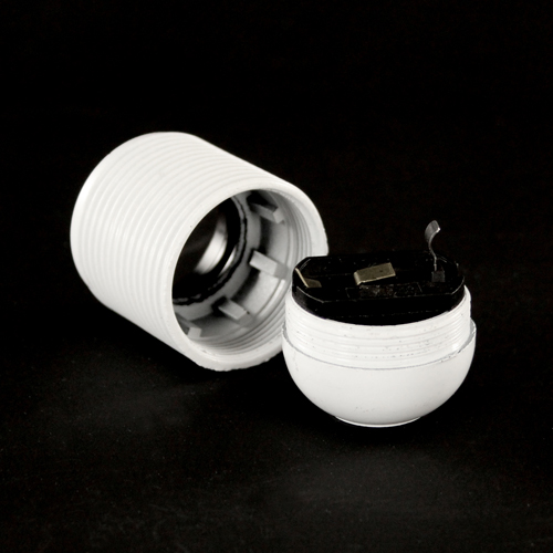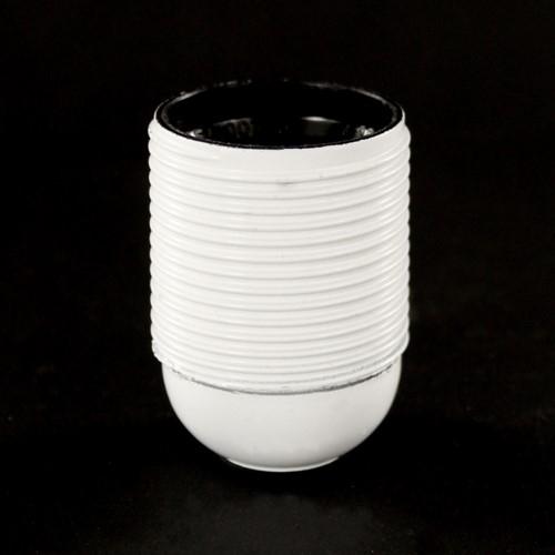 Portalampada filettato in plastica, attacco E27, composto da fondello, pastiglia e corpo.