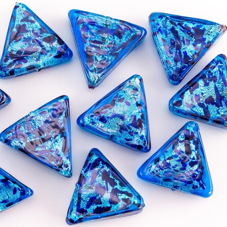 Perla di Murano triangolare 25 mm per gioielli vetro, vetro sommerso blu foglia argento. Foro passante per la realizzazione e creazione di bijoux, monili, collane, bracciali, orecchini e decorazioni varie.