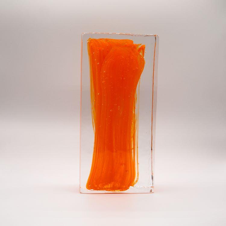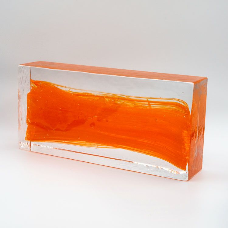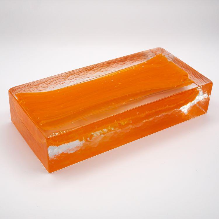 Blocco mattone anima arancio in vetro di Murano cristallo trasparente
