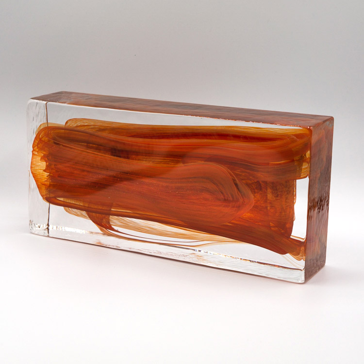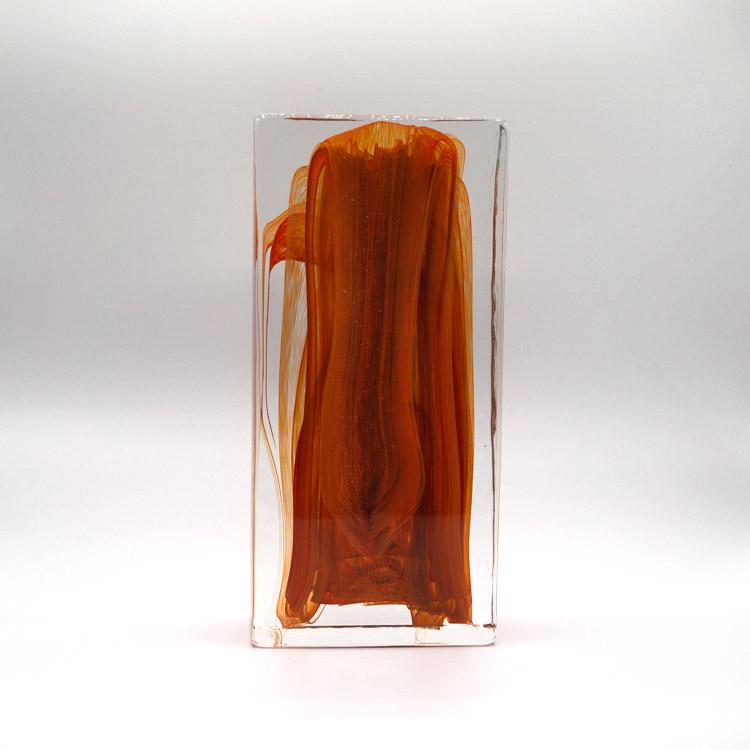 Blocco mattone anima rossa in vetro di Murano cristallo trasparente