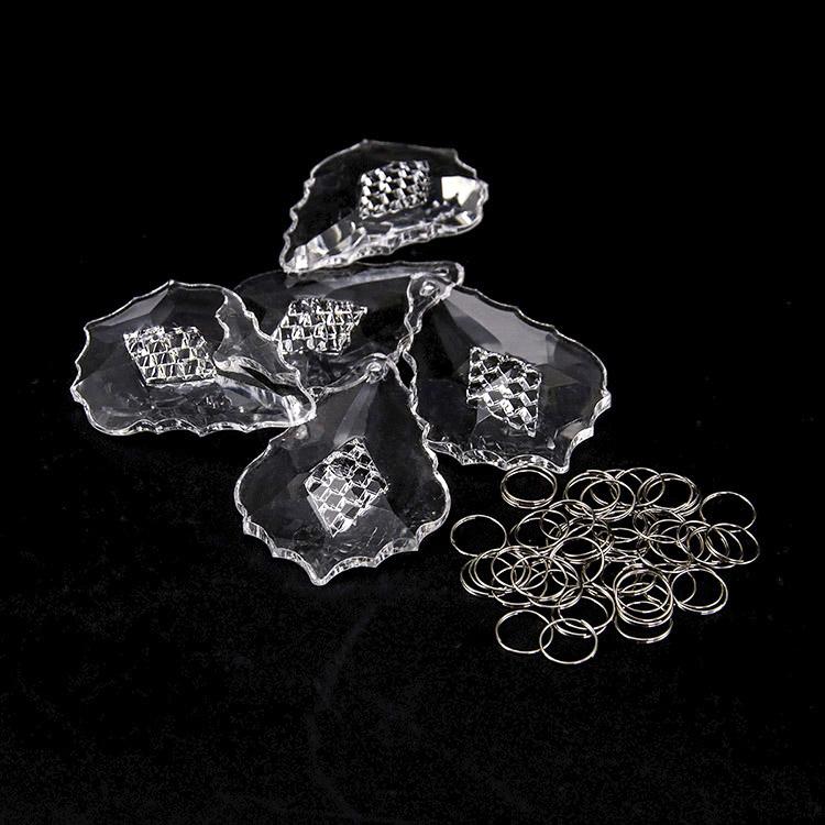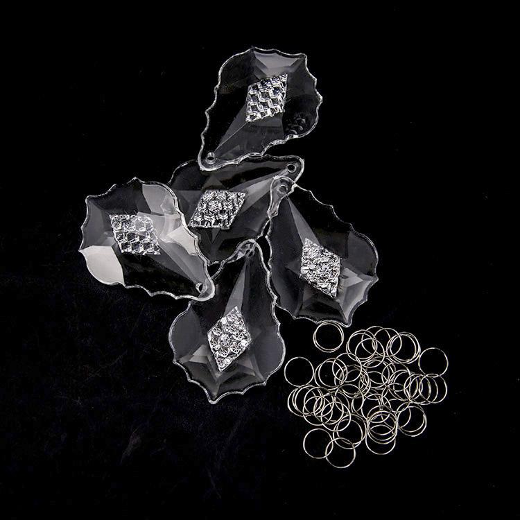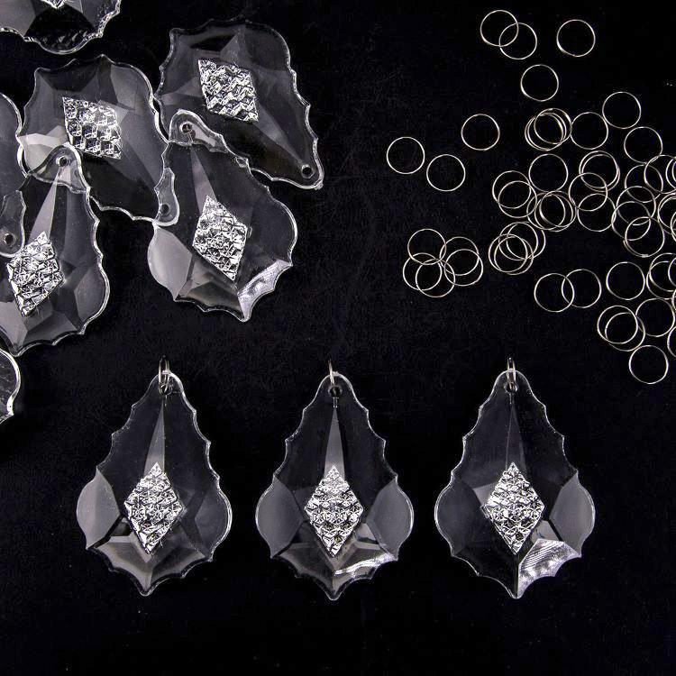 Confezione risparmio: 10 pz Pendente foglia barocca 63 mm cristallo acrilico + 10 pz anello brisè 10 mm