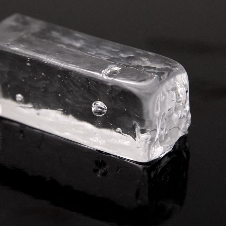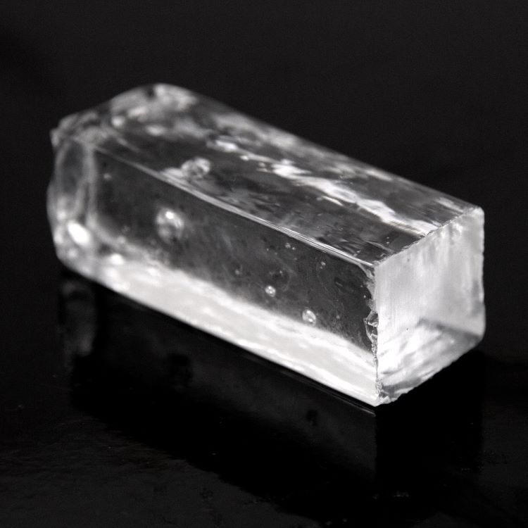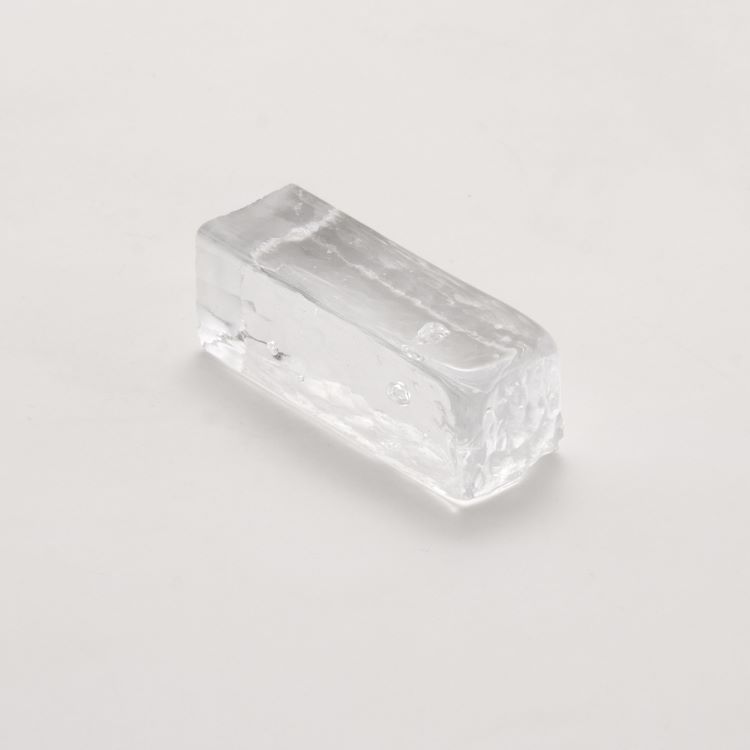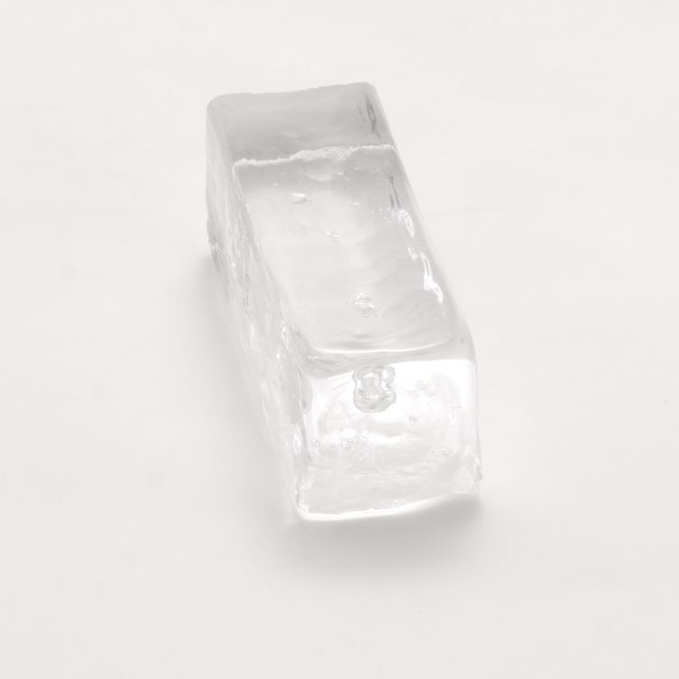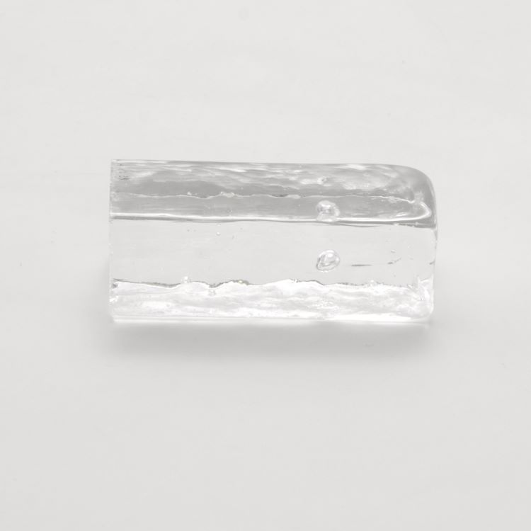 Blocco mini mattone in vetro cristallo trasparente di forma rettangolare.