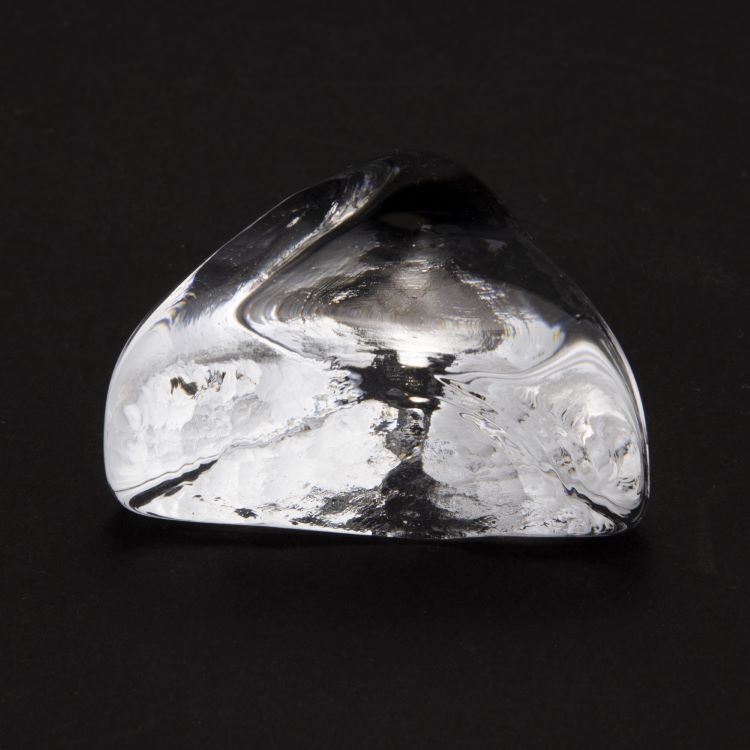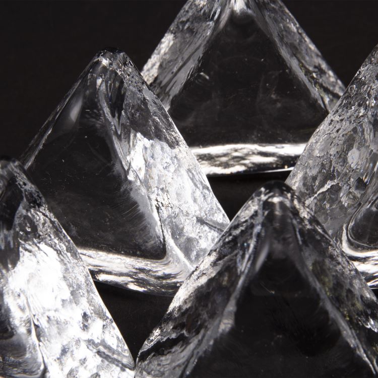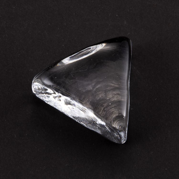 Blocco mini mattone di forma triangolare in vetro colore cristallo trasparente. Misure 50X50 mm spessore 20 mm.