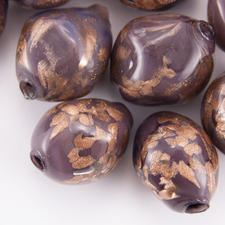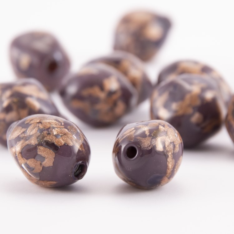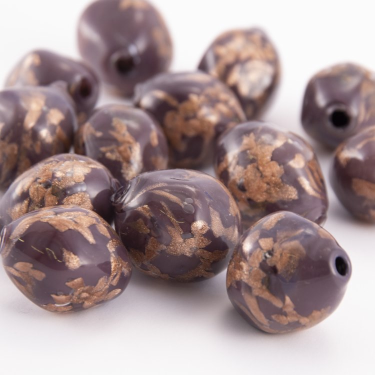 Di colore ametista con brillante avventurina dai mille riflessi. Perla ideale per realizzazioni di alta bigiotteria, gioielli, collane e bijoux di grande effetto.