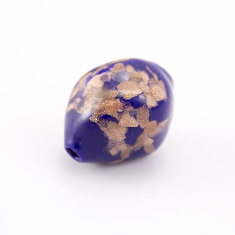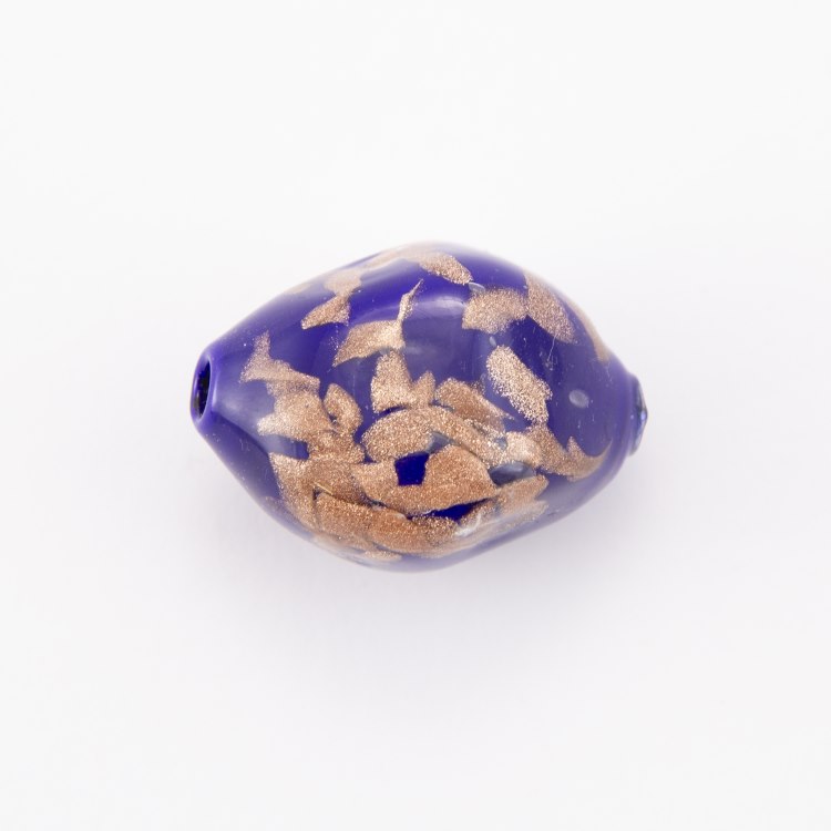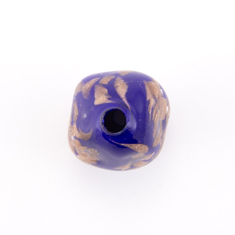 Perla di Murano grande formato poliedrico 28 mm blu con avventurina