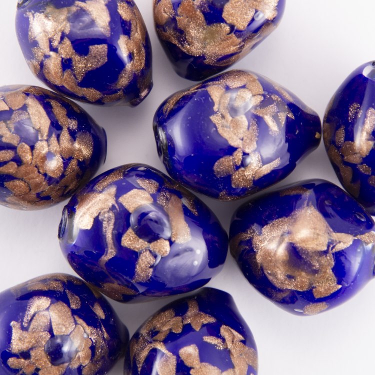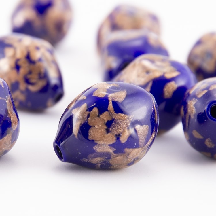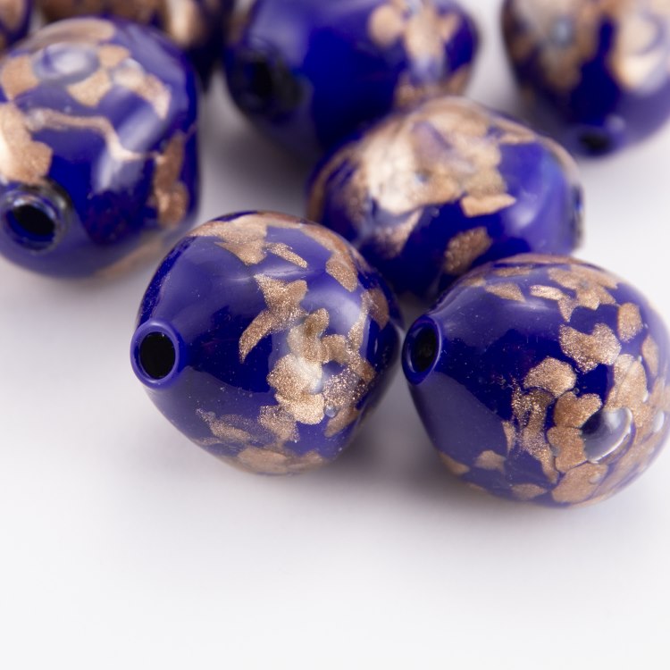 Di colore blu con brillante avventurina dai mille riflessi. Perla ideale per realizzazioni di alta bigiotteria, gioielli, collane e bijoux di grande effetto.