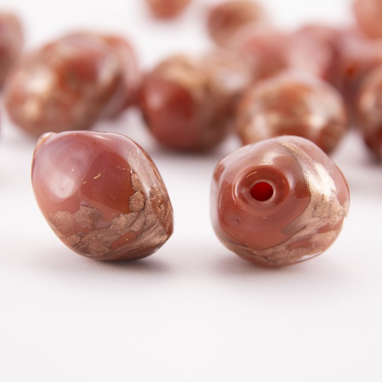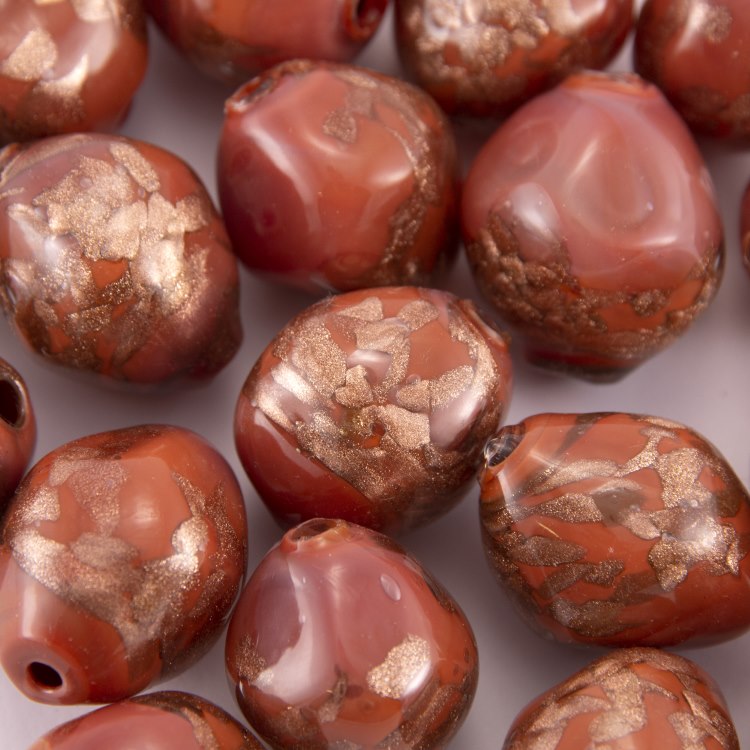Di colore cioccolato con brillante avventurina dai mille riflessi. Perla ideale per realizzazioni di alta bigiotteria, gioielli, collane e bijoux di grande effetto.