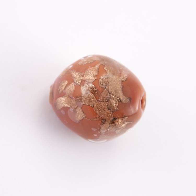 Perla di Murano grande formato poliedrico 28 mm color cioccolato con avventurina