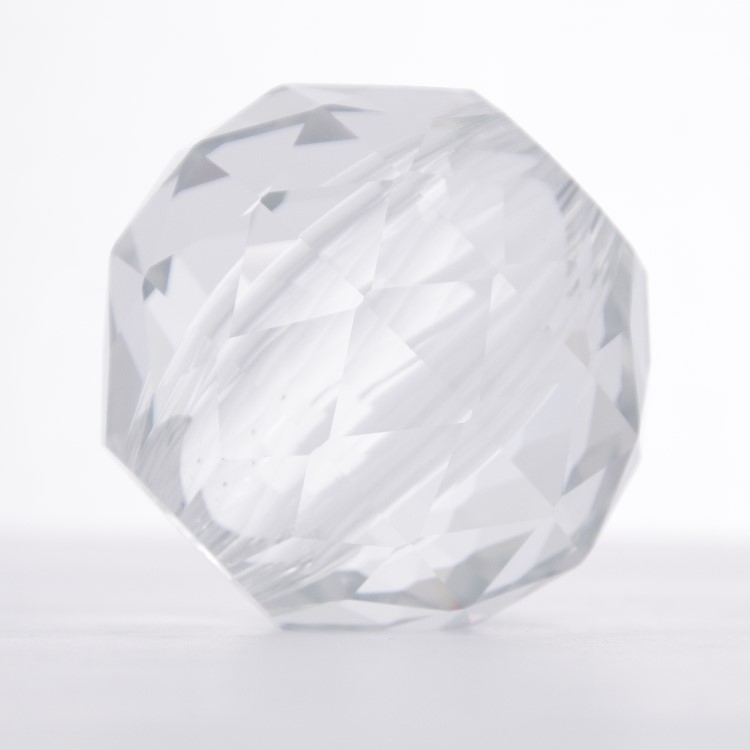 Sfera sfaccettata con foro passante centrale, infilaggio per lampadari classici e moderni, lampadari cristallo, restauri e design.