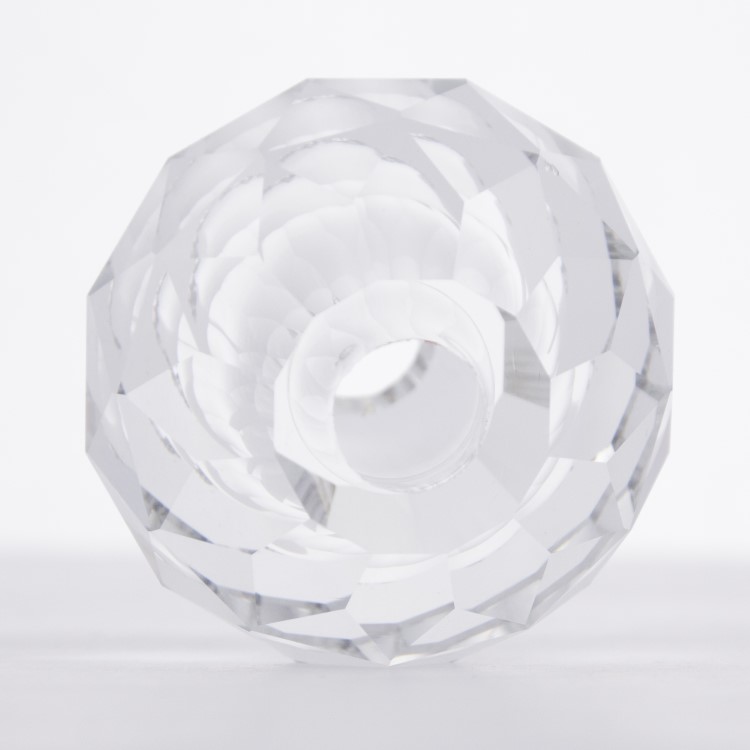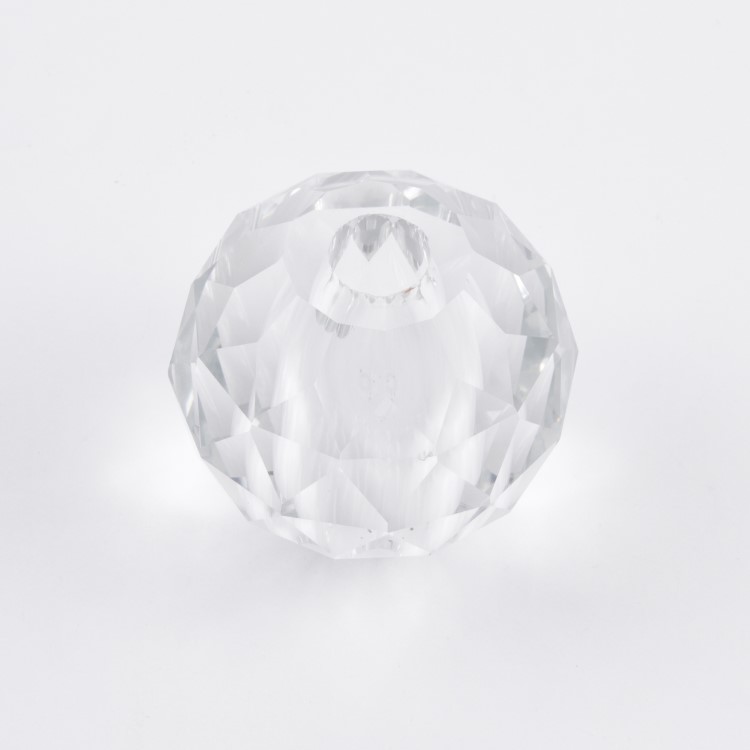 L'opera è in cristallo molato, pulito e brillante: ha altezza di 55 mm e diametro di 60 mm con foro centrale da 14 mm. Sempre disponibili maggiori quantitativi e sconti personalizzati per quantità.