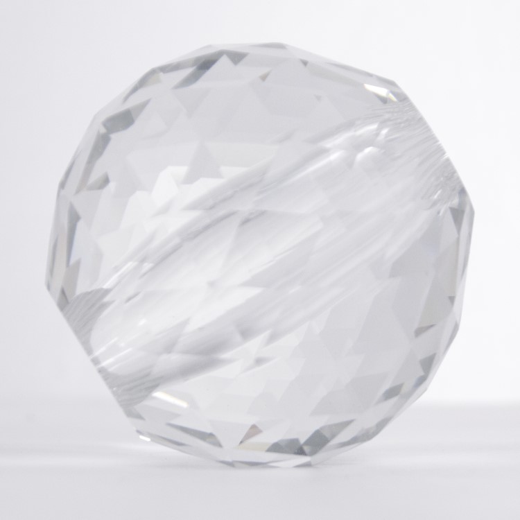 Sfera sfaccettata con foro passante centrale, infilaggio per lampadari classici e moderni, lampadari cristallo, restauri e design.