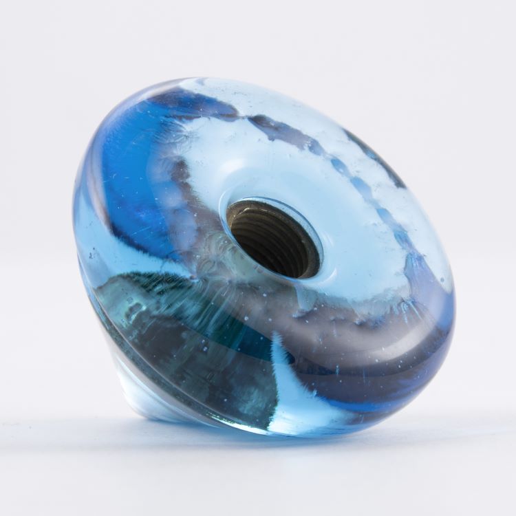 Maniglia pomello cono turchese Ø40 mm vetro di Murano con filettatura M10 femmina.