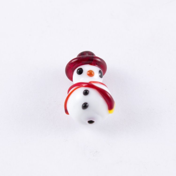 Perla di Natale in vetro di Murano a forma di pupazzo di neve.