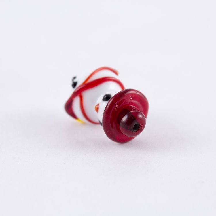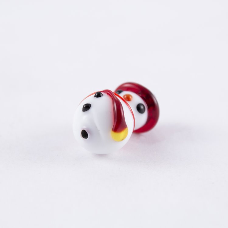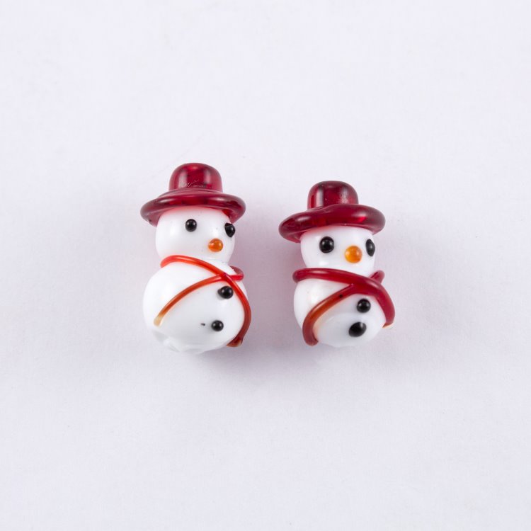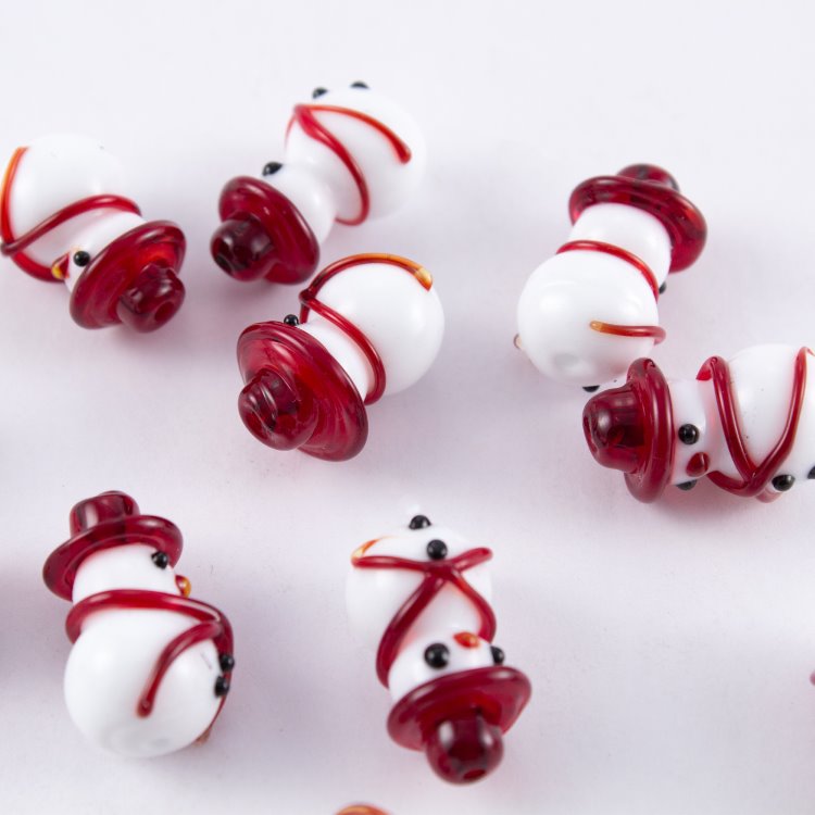 Perla di Murano pupazzo di neve medio. Vetro bianco, nero e rosso